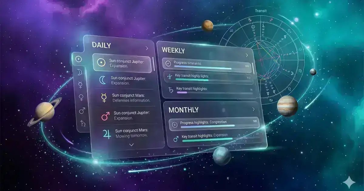 Mevcut Gezegen Geçişleri Bugün gökyüzünden geçen gezegenlerin doğum anınızdaki konumlarıyla nasıl etkileşimde bulunduğu. Bir Ay geçişi hassas alanlarınızı aktive edebilir; bir Mars geçişi çatışma veya motivasyon getirebilir.
