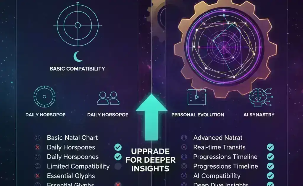Це комплексне керівництво порівнює безкоштовні та платні інструменти астрології, допомагаючи вам зрозуміти, які функції виправдовують вартість та коли безкоштовні опції достатні для ваших потреб. Незалежно від того, чи починаєте ви вивчати астрологію або досвідчений практик, що шукає розширені функції, це керівництво допомагає вам орієнтуватися в ландшафті інструментів астрології.